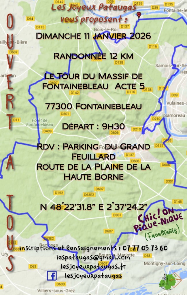 Le Massif de la Forêt de Fontainebleau étant un lieu de randonnée, prisé des Joyeux Pataugas, merci de prendre connaissance des dates de chasse de la saison 2025/2026 en Foret Domaniale de Fontainebleau et en Forêt des Trois Pignons