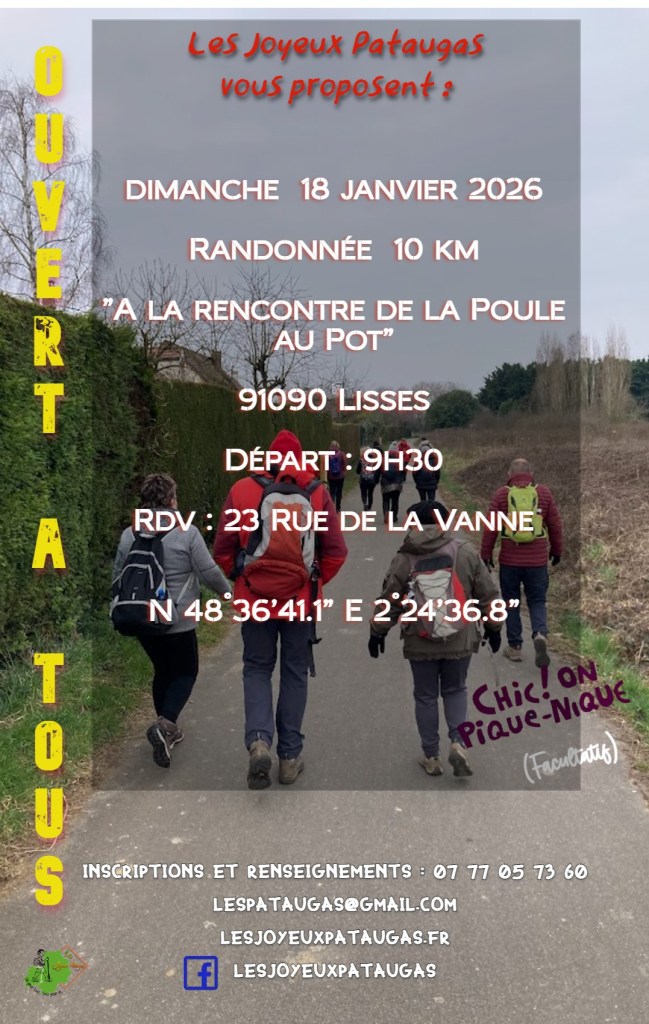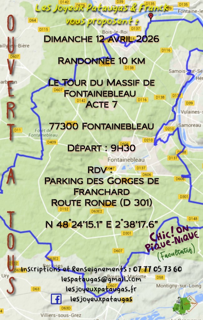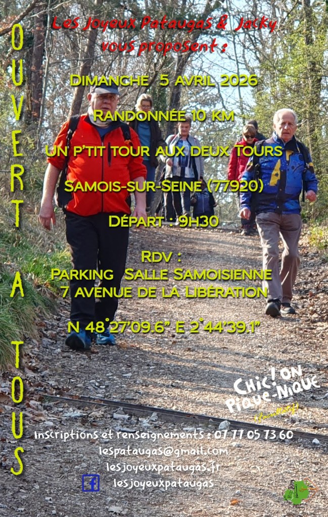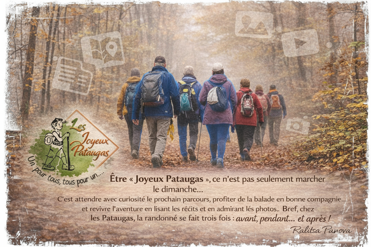 Depuis des lustres, « Les Joyeux Pataugas » sillonnent le dimanche, principalement sur les sentiers de l’Essonne et de Seine-et-Marne, et cela pratiquement tout au long de l’année, même pendant les vacances scolaires (hormis celles de fin d’année). Comme ils organisent ici et là, avec participation, des week-ends et des séjours !!!