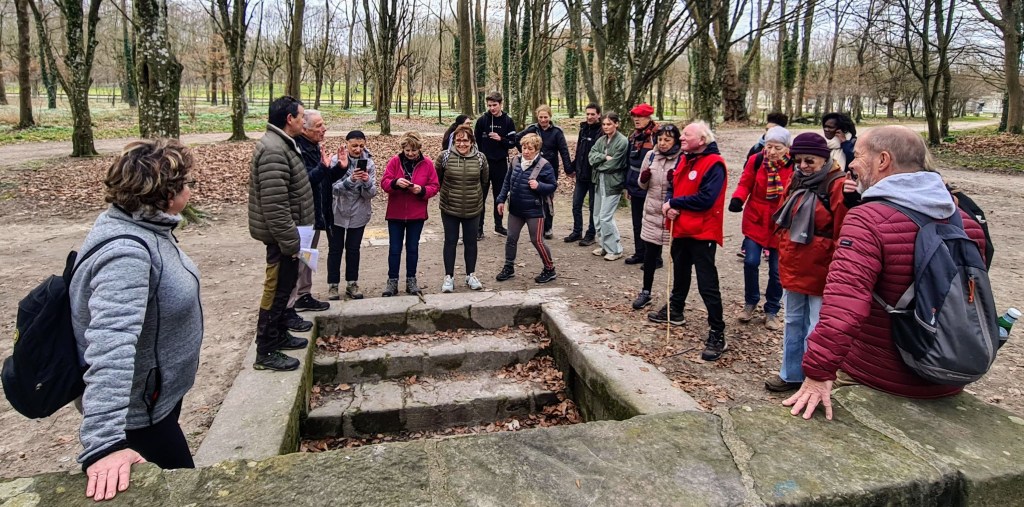 Par contre, point de têtes couronnées pour apostropher Les Joyeux Pataugas, dans le parc, longeant le canal…en regard des grilles du Bois d’Hyver, alors qu’ils sont tous interrogatifs sur le nom de la reine qu’évoquent cette Fontaine de la Reine qu’ils entourent !!! Marie- Antoinette peut être ??? Alors si une bonne âme férue d’histoire lit ces lignes, qu’elle ne se prive pas, la Cour des Joyeux Pataugas est toute ouïe !!! Attention, à quelques centaines de mètres de là, se tient La Fontaine Napoléon 1er, que nos Joyeux Pataugas n’iront malheureusement pas voir, faute de temps !!! On murmure que La Cour des Joyeux Pataugas serait attendue vers 13h00, par un Maharaja !!! Que voulez-vous, le Joyeux Pataugas fricote avec bien des royaumes et des empires et mange à tous les râteliers !!!