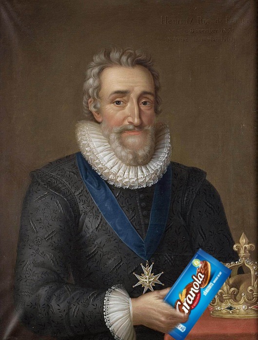 Et comme toujours, il y a toujours un temps pour la pause !!! Et c’est devant la salle de bal, que les traditionnelles bananes et un succulent pain d’épices de Jocelyne sont pleinement honorés !!! Quant aux biscuits « Granola » de Christine et de Marie-Claude, demandez à Henri IV ce qu’il en a pensés ??? Et oui, Le Joyeux Pataugas est partageur même avec les Rois de France !!! D’ailleurs, c’est avec une barbichette toute « granolée », qu’Henri IV leur présente à droite, derrière sa grille Hermès, sa Cour des Offices et à gauche, une fois sa Porte Baptistère passée, leur montre sa Cour Ovale !!! Il a été murmuré ensuite, au sein de La Cour des Joyeux Pataugas, qu’avant de nous quitter à l’entrée du Jardin de Diane, Henri aurait tenté auprès de Marie-Claude et de Christine, de leur soustraire quelques « granolas » de plus !!! Maintenant rappelons aussi qu’on le surnommait « le Vert Galant », pour l’amour inconditionnel qu’il portait à la gent féminine !!! Un sacré gourmand le Henri !!! Et ce n’est pas une certaine Gabrielle d’Estrée, qui le contredira!!! A la Cour de France, il se murmurait également qu’on l’apercevait souvent au Château de Fontainebleau !!! Mais qui sait, peut être que Gabrielle lui apportait des « granolas » !!! Allez savoir…