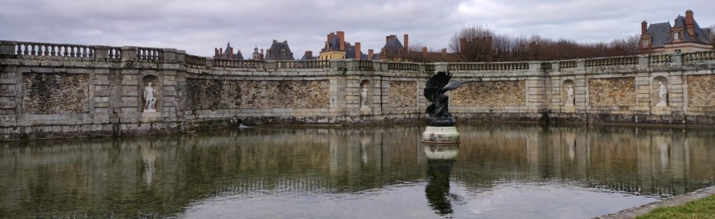 Quoi qu’il en soit voilà Les Joyeux Pataugas au beau milieu du Jardin Anglais, papillonnant d’allées en allées !!! Petit arrêt obligatoire, devant la Source Fontaine Belle Eau, un bassin octogonal en pierre de taille installé par ce sieur Hurtault quand tout à coup survient Le Primatice, qui tapotant sur l’épaule d’un Joyeux Pataugas, lui révèle qu’au 16ième siècle, il avait installé un édicule pour cette source, qui malheureusement fût détruit à la Révolution !!! Mais que surtout, de cette source est née une des légendes explicitant le nom de Fontainebleau. En effet, on raconte que cette source possède une eau si pure et si transparente que fût créée une fontaine nommée « Belle eau ». Par contraction cette fontaine « Belle eau » aurait, par usage répété, donné le nom de Fontainebleau. Allez Savoir…