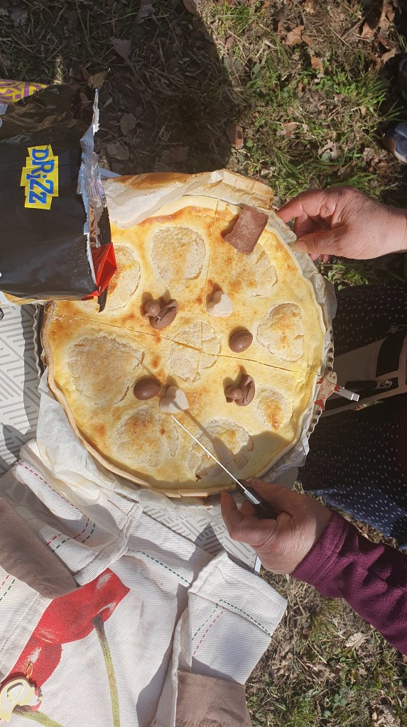 Et puis, le Joyeux Pataugas est connu pour en garder sous le pied pour la troisième mi-temps, surtout qu’en ce dimanche … Audrey et Stéphane régalent au champagne leur maison et que Monique, Dimanche de Pâques oblige, a concocter un gâteau de circonstance !!!