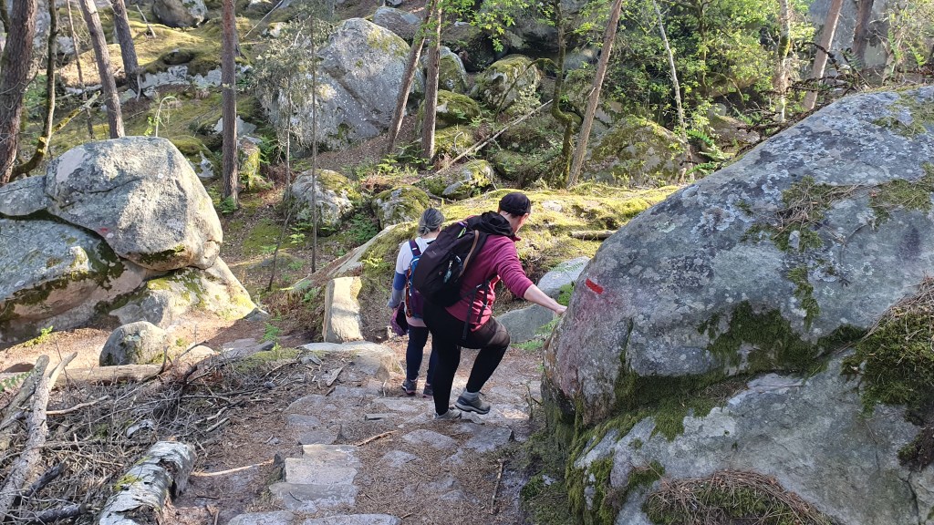 Surtout que les deux premiers chapitres se déroulent, là où il y a, trente millions d’année, la mer stampienne s’est retirée pour laisser place à un immense chaos gréseux… et où, belle lurette après, entre 1969 et 1970, la bande à Puck, à crée le circuit des 25 bosses pour l’entrainement des longues marches en montagne !!!