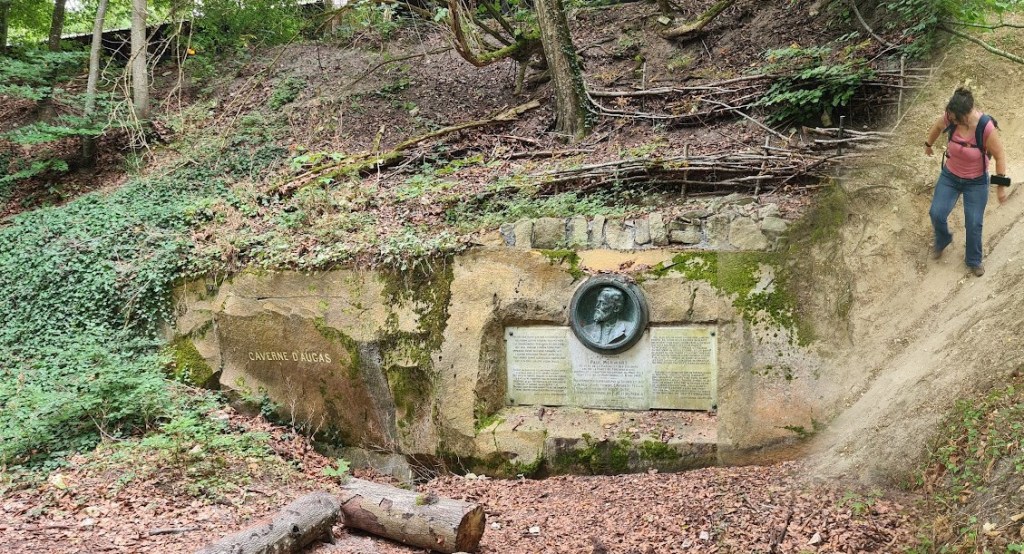 C’est donc avec quelques calories supplémentaires que les Joyeux Pataugas reprennent la route !!! Le tracé d’Audrey, les conduit au Carrefour de la Croix d’Augas, ou là, tout près, via une descente scabreuse, se trouve un monument à la mémoire du peintre Paul Merwaert !!!