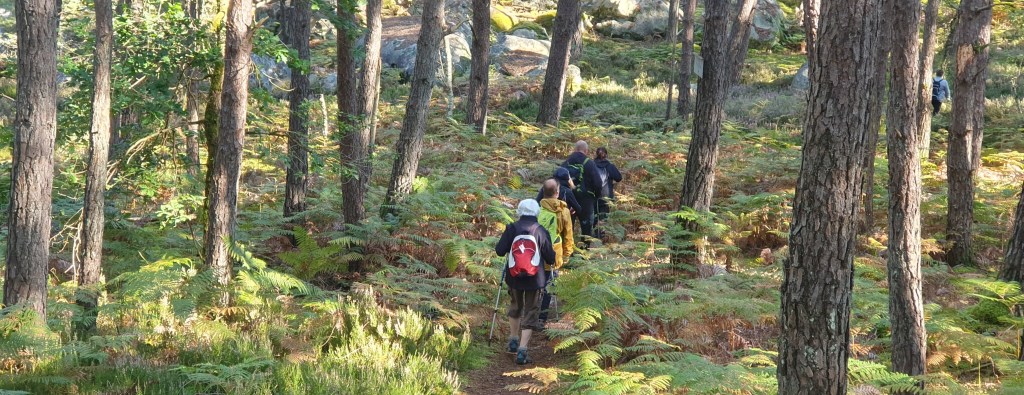 Et elle le montre, la partie charnue de nos Joyeux Pataugas !!! La Route Descamps est vite sillonnée…, et que dire du dénivelé positif puis négatif qui mène à La Gorge aux Archers, il est avalé comme jamais !!! Ce n’ait pas pour autant que nos Joyeux Pataugas ne pensent qu’à booster leurs croupions, sans prendre le temps de profiter du spectacle végétal de l’instant !!! Bien au contraire, devant ces raies de soleil qui fusent au travers de la forêt bellifontaine, où feuillages, fougères, bruyères, rochers et bois morts se mettent en scène, ils n’ont qu’un seul mot : magnifique !!!