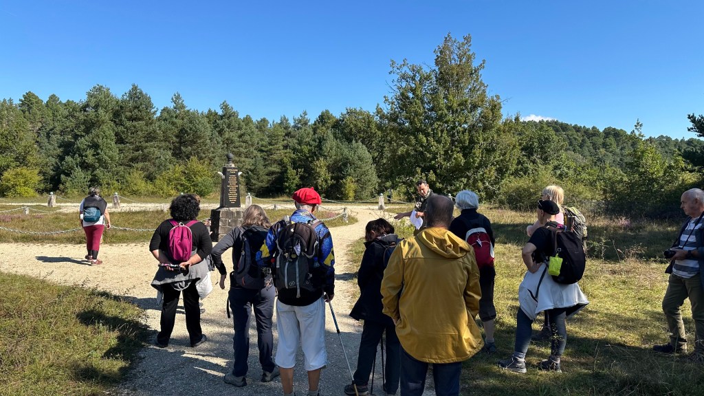 Mais comme toutes les bonnes choses ont une fin, il est grand temps que ces séants se lèvent, se remuent car un brin plus loin, et surtout un peu plus haut, Notre-Dame-de-Grâce les attend. Mais avant qu’ils se hissent vers cette Tour de la Vierge, les voilà se dandinant à la Plaine de Chanfroy, sur l’Allée des Fusillés !!! Là où sont érigés deux stèles, en mémoire à ce massacre de la dernière heure à l’été 44 !!! A ces 36 hommes, issus des maquis de la région, qui furent fusillés par la Gestapo, le 21 juillet et le 17 août 1944, alors que 2 jours plus tard, le 19 août, l’armée américaine pénétrait dans Achères-La-Forêt et que le 23 août, Fontainebleau était libéré !!!