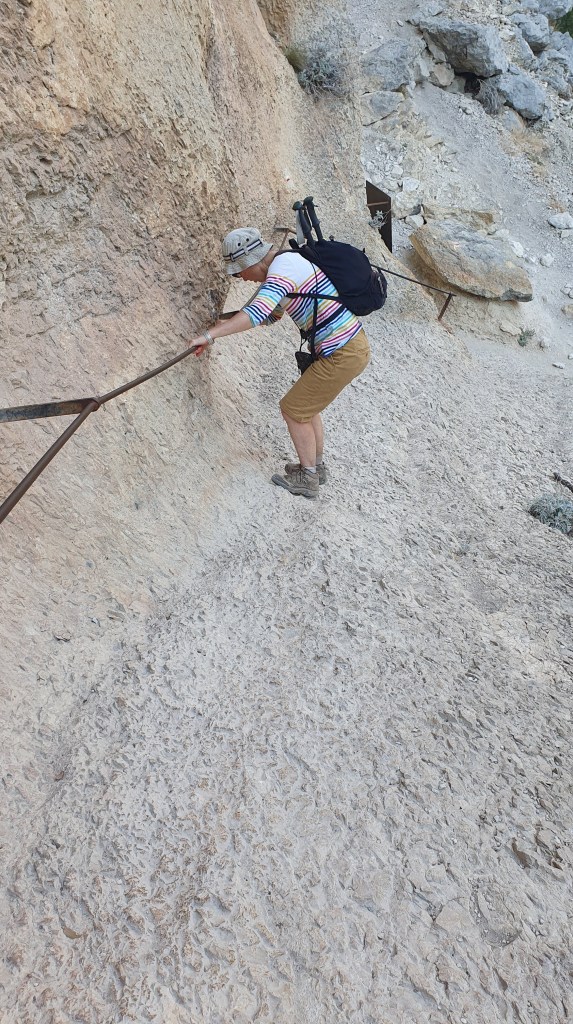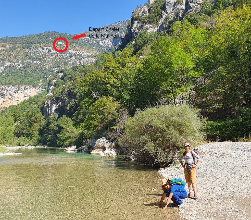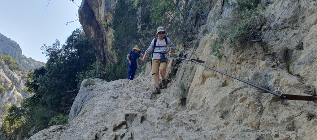 Et voyez comme Audrey est revenue à la raison, ou tente de faire passer la pilule, en proposant aux Joyeux Pataugas… de quitter l’instant d’un moment ce sentier bleu escarpé, afin de soulager un brin leurs gambettes !!! Bonne initiative… car le retour vient simplement d’être entamé… et il est déjà… 11h30 !!! Et ce Chemin de la Gorge aux Chats bien plat et linéaire, en parallèle du sentier bleu, va leur permettre de revenir dans des créneaux horaires un brin acceptable !!!