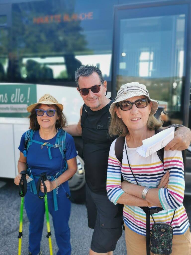 Le temps de digérer,de se faire une beauté, voire pour certains de s’offrir une micro-siestedigestive express, voilà déjà Les Joyeux Pataugas qui se rassemblent sur le parking, métamorphosés en touristes du dimanche. Exit les godasses de rando, les bâtons de marche et les sacs à dos façon expédition himalayenne ! Place aux mocassins, aux petits tops et aux shorts, bref, une allure de club de globe-trotters élégants plutôt que de randonneurs intrépides.