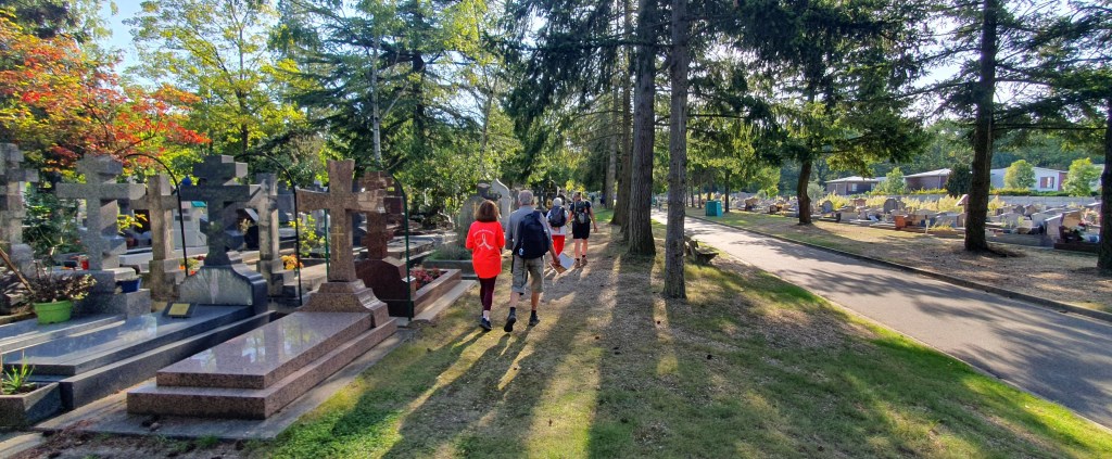 Le reste du groupe poursuit sur une longue ligne droite à travers champs, avec pour horizon poétique la déchetterie et le centre de traitement des ordures de Vert-le-Grand. La route paraît interminable, mais elle mène à une pause salvatrice, le temps d’une nouvelle causerie de Pascal, consacrée cette fois au plus grand Data Center d’Europe, cathédrale moderne du numérique.