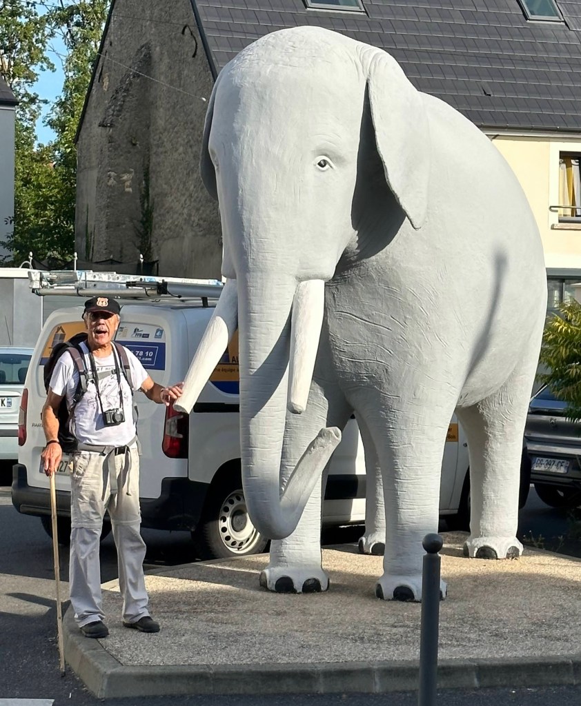 Bièvres est une cité culturelle, et vous savez combien le Joyeux Pataugas aime s’instruire tout en marchant !!! Donc dès le départ, rue de la Fontaine quelques photographies exposées jalonnent notre tracé, quand… soudain, notre œil aiguisé comme jamais, est attiré par l’une d’elles, et ô surprise, voilà, les cabines de plages aux toits colorés…de Gouville-sur-Mer dans le Cotentin, chères à Mr et Mme Marie dans les années 20, et où Les Joyeux Pataugas sont venus trainés leurs guêtres fin juin 2022 et que notre artiste-peintre Jany à immortalisé !!!