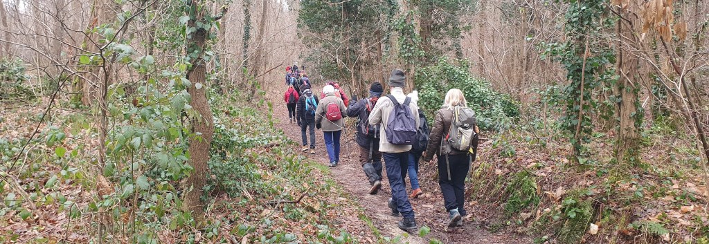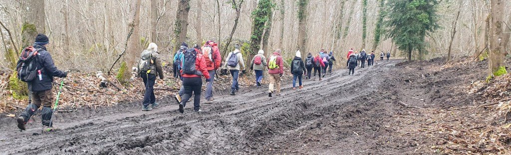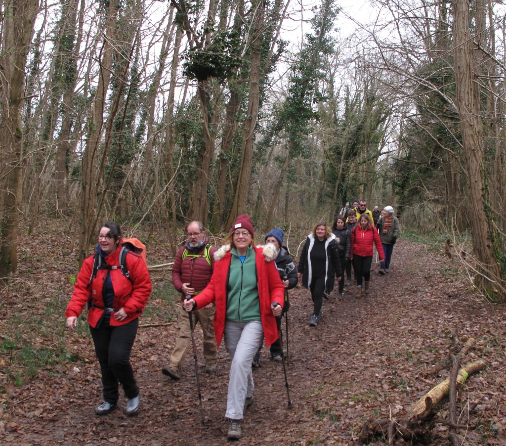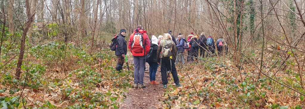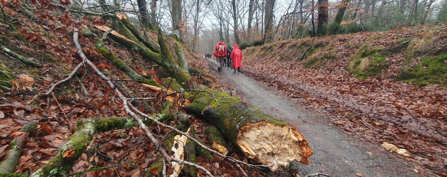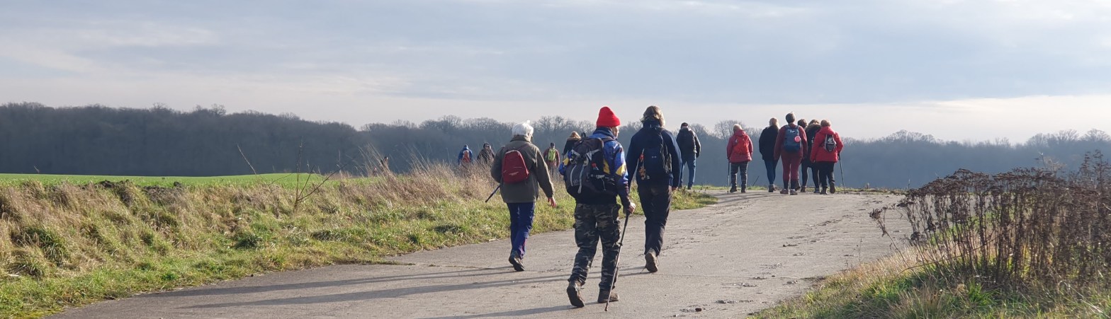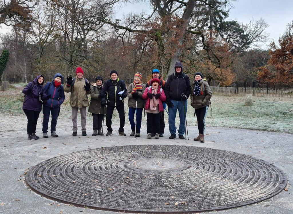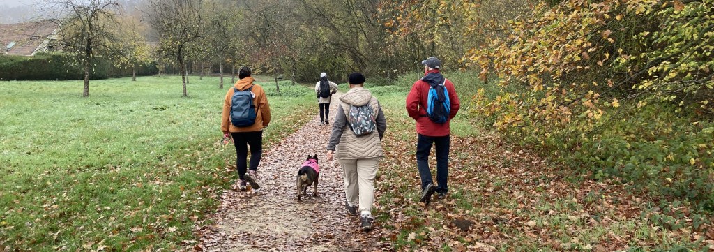 En ce dimanche 30 novembre, vers 9 h 30, vingt-et-un Joyeux Pataugas et une boule de graisse ou de muscle (on ne sait plus trop) à quatre pattes, experte en ramassage de miettes, sont rassemblées sur le parking de la Boulignère sous le “haut commandement” de Sylvie R. Car aujourd’hui, Les Joyeux Pataugas ne sont plus de simples randonneurs : ils sont officiellement affiliés à l’OCBC, l’Office Central de lutte contre le trafic des Biens Culturels… section Marches à Pied.