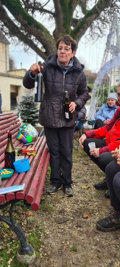 Remerciements à Jacqueline, l’accompagnatrice du jour même si à la queue leu, leu, elle oblige les Joyeux Pataugas, à engloutir ses supers petits gateaux, évitant ainsi toute contestation sur le nombre de kilométrage !!! Et comment ne pas saluer le retour du rituel de François-Noël avec les petits dés d’Emmental et de Comté, coupés amoureusement et le p’tit canard !!! Manquaient à l’appel les minis-Babybel, alors que Patrick est de retour !!! Et comment oublié votre narratrice, Monique, qui même si elle a oublié qu’une fois dans l’année elle est une Sainte, à su se faire pardonner avec des chocolats pralinés et un café.