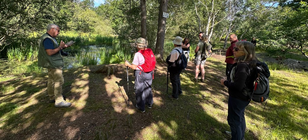 Donc une fois le chaos rocheux grimpé et passé, Les Joyeux Pataugas sont toujours au nombre de 15 ou plutôt 18, vu qu’au départ la gente canine n’a pas été prise en compte !!! Saluons , Nissa, notre habituelle mascotte mais aussi les intermittents du spectacle du jour Raika et Oggy !!! Oh, mais quelle jolie mare que voilà !!! Qui avouons-le, n’a pas à rougir des mythiques mares de la forêt bellifontaine !!! Et Dieu sait que votre narrateur est un vrai chauvin de la forêt de Fontainebleau !!! Mais ce chauvinisme est loin de la préférence excessive de certains pour la Bretagne, qu’ils soient de souche ou adoptés d’ailleurs !!! Oui, je sais… je ne vais pas me faire que des amis en écrivant cela … mais bon… que vaut la vie sans prise de risque ??? Et puis tout est dans la mesure… !!! Clin œil à tous ces bretons, bretonnes, vrais ou faux… qui hantent Les Joyeux Pataugas !!!