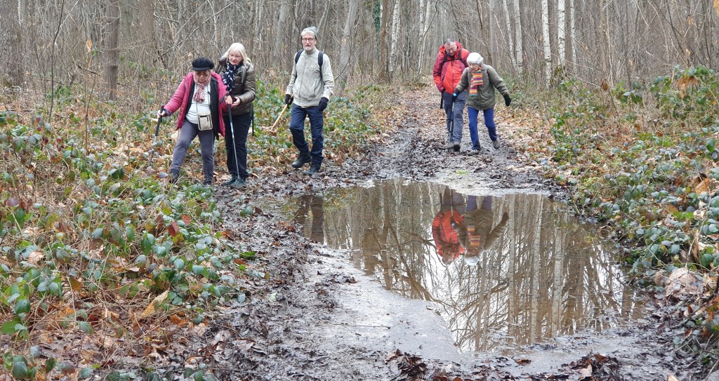 C’est presque un pas autour que par le chemin des Justices, ils regagnent le parking. Mais bien sûr, il n’est pas question de déroger à la traditionnelle photo de groupe, alors totalement le pas autour, ils s’y collent, devant un étang, avec une ribambelle de canards comme spectateurs.